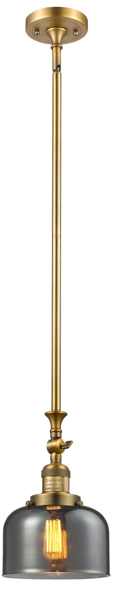 Bell 8" Brushed Brass Tiltable Mini Pendant w/ Plated Smoke Shade
