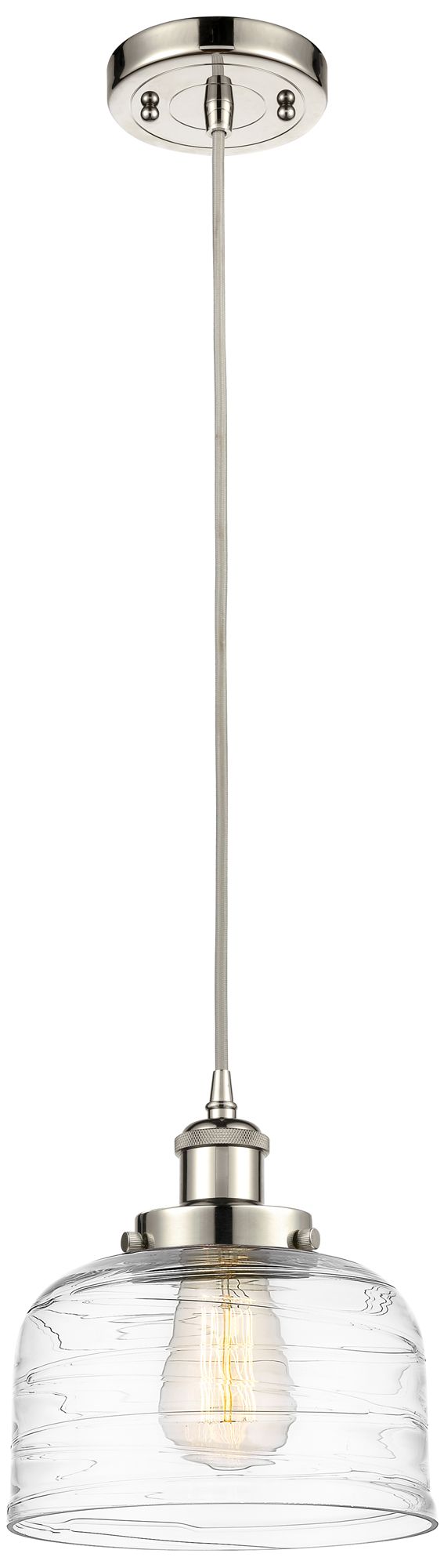 Ballston Urban Bell 8" Polished Nickel Corded Mini Pendant w/ Deco Sha