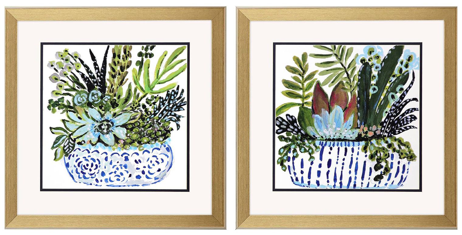Succulent Garden I 18"W x 18"H Framed Art Set of 2