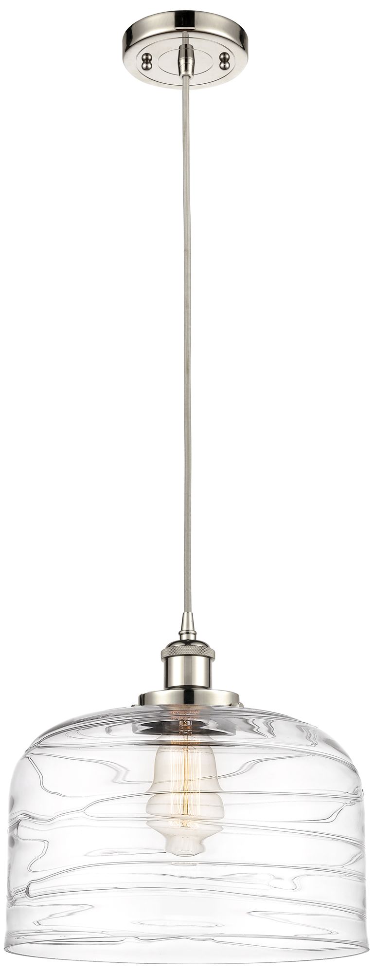 Ballston Urban Bell 12" Polished Nickel Corded Mini Pendant w/ Deco Sh