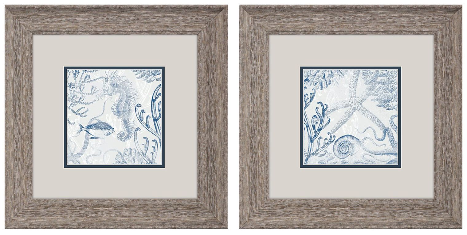 Seabed Scene B 13"W x 13"H Framed Art Set of 2