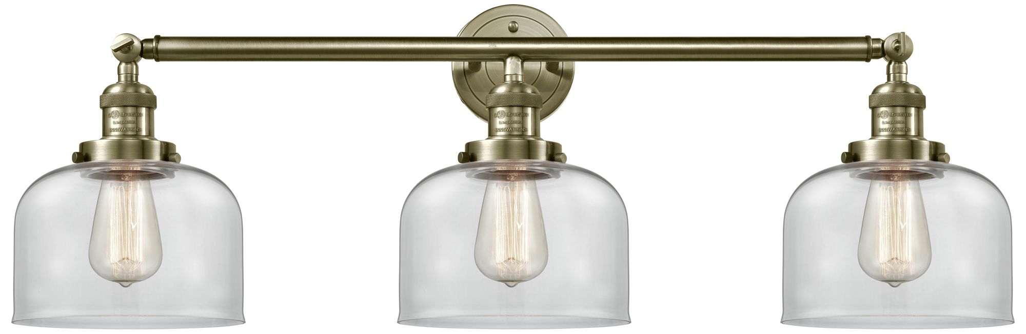 Bell 3 Light 32" LED Bath Light - Antique Brass - Clear Shade
