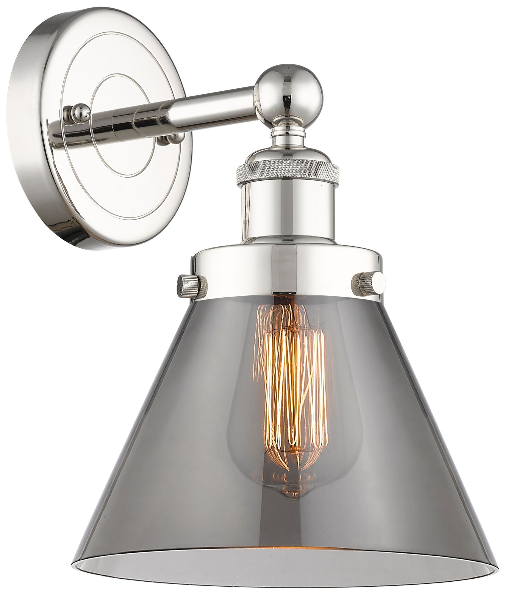Large Cone 11.5"High Polished Nickel Sconce With Plated Smoke Shade