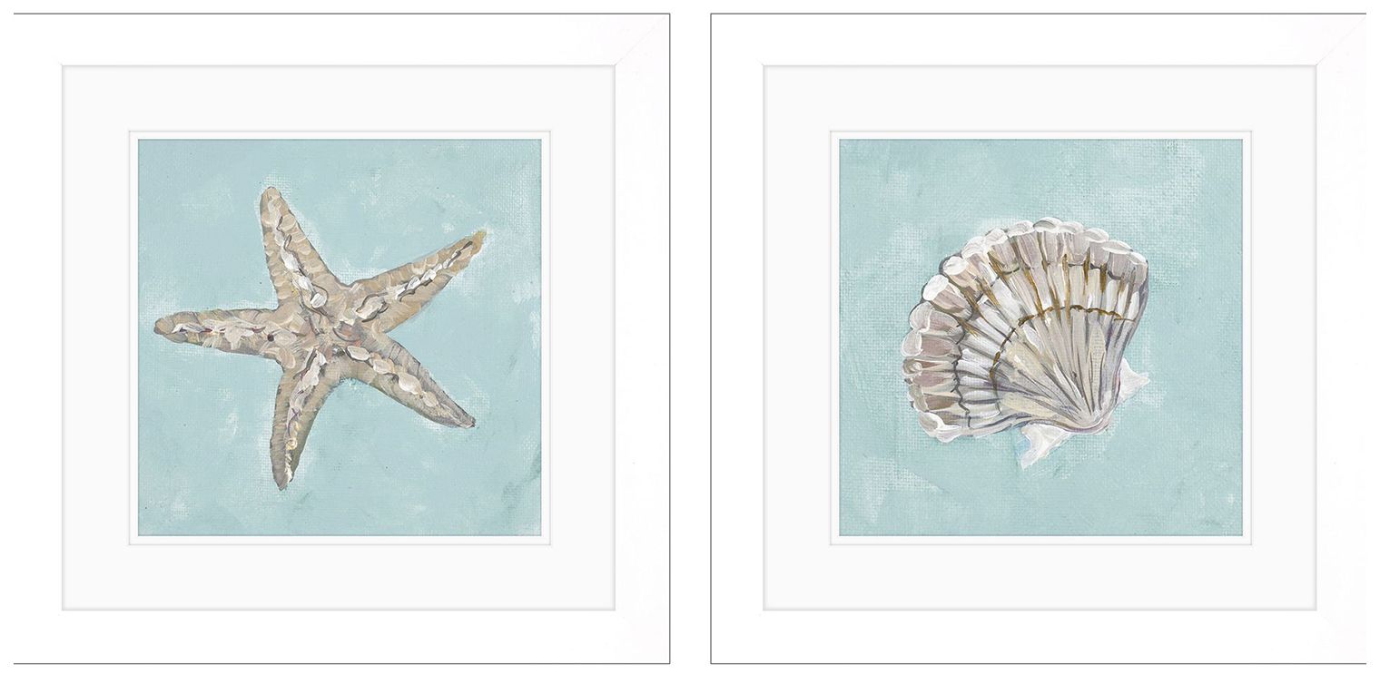 Seashell B 19"W x 19"H Framed Art Set of 2