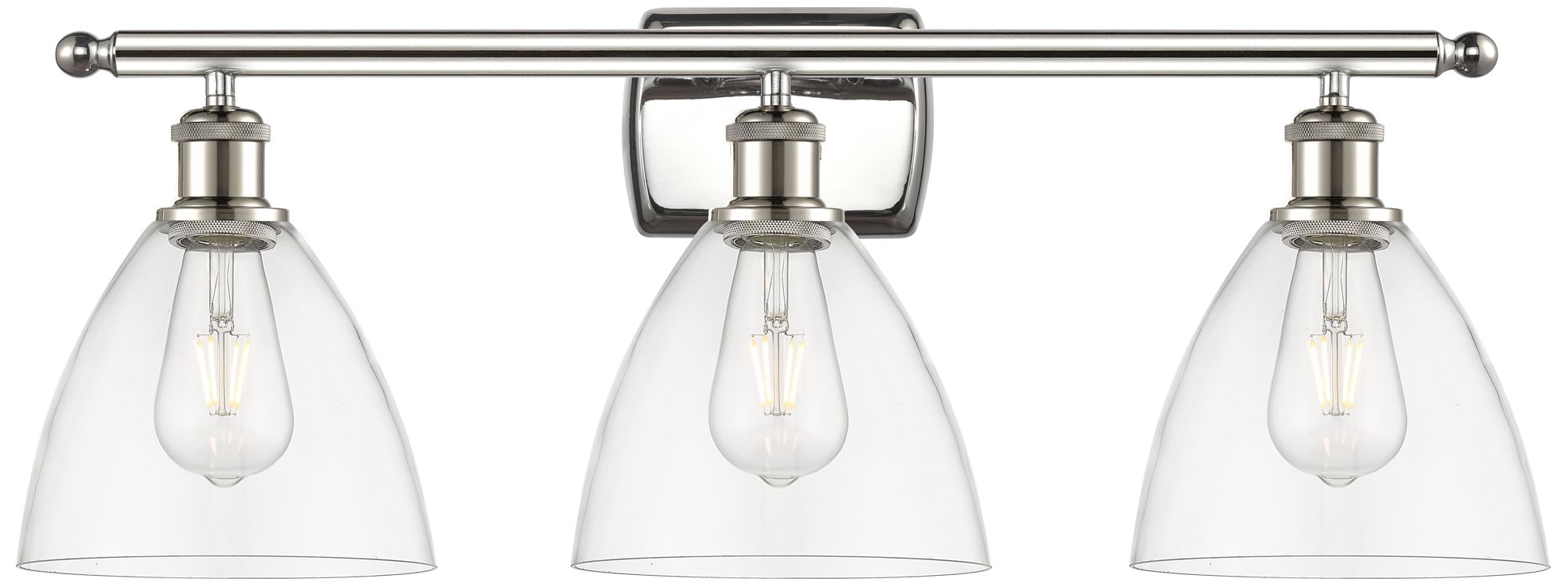 Bristol Glass 3 Light 28" Bath Light - Polished Nickel - Clear Shade
