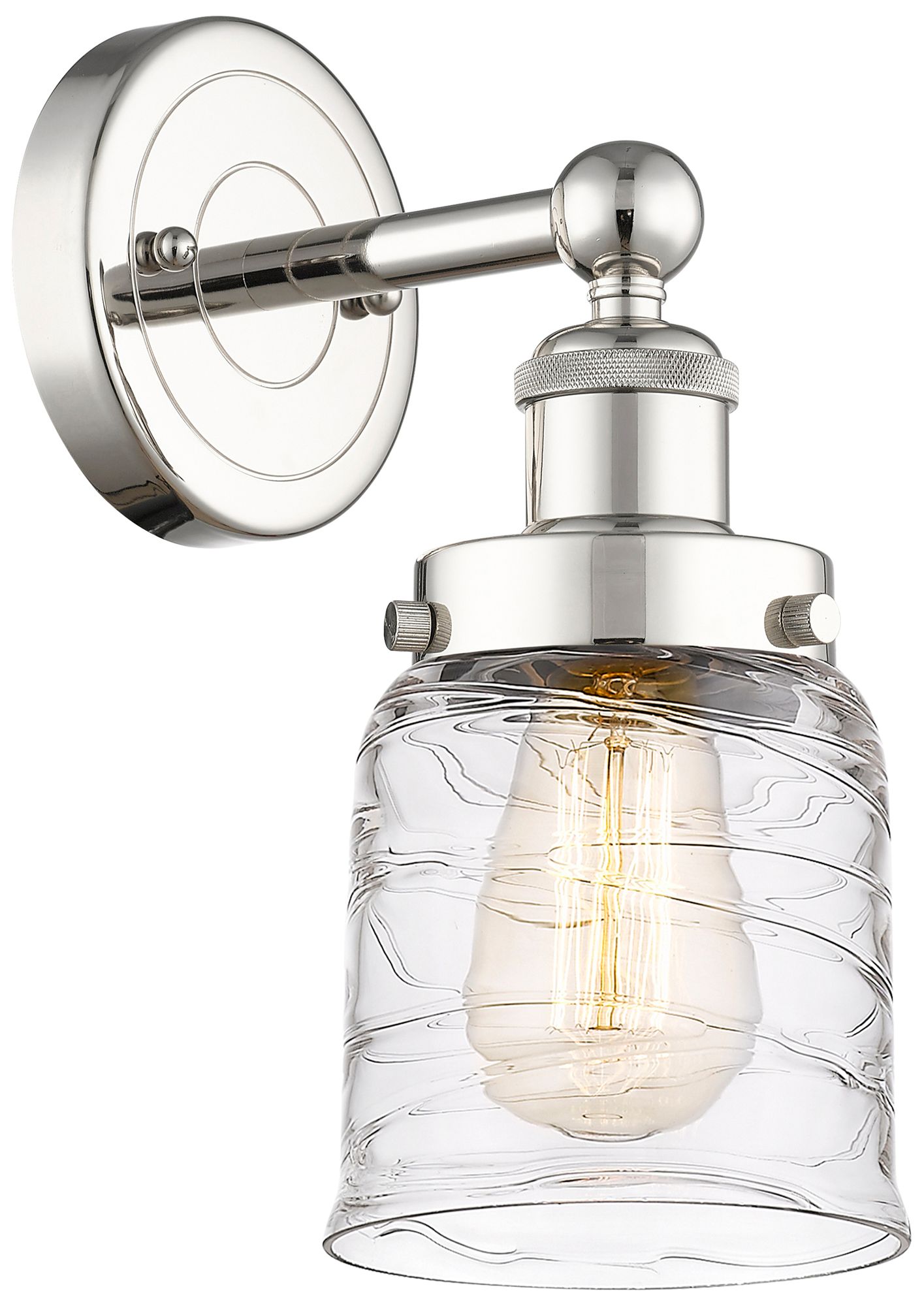 Small Bell 10"High Polished Nickel Sconce With Clear Deco Swirl Shade