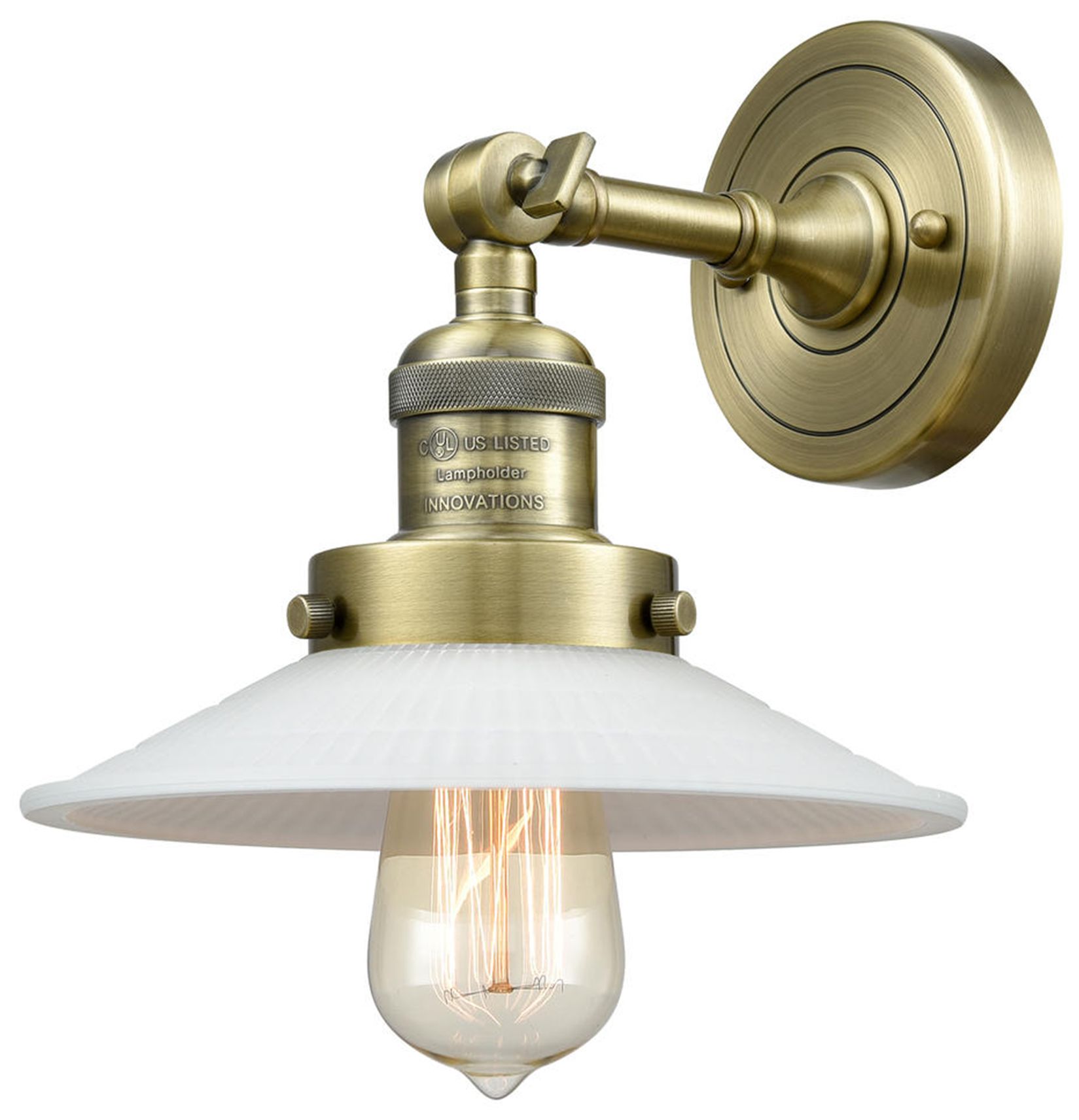 Halophane 9" Antique Brass Adjustable Sconce w/ Matte White Shade