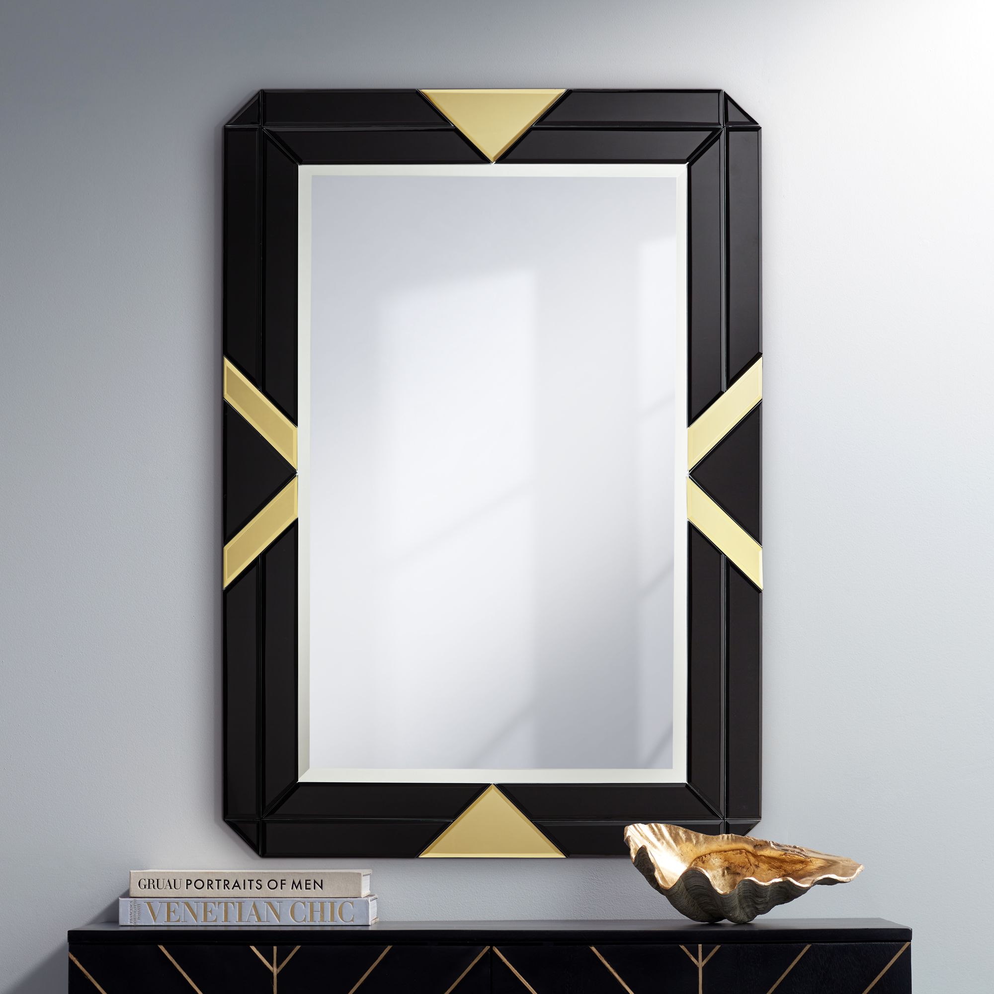 Possini Euro Demira 28" x 40" Black and Gold Wall Mirror