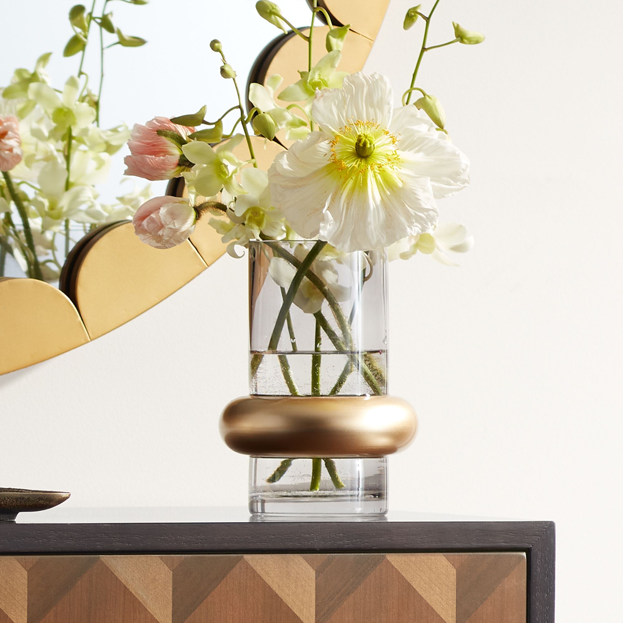 Jaurdi 7" High Clear Brown Glass and Gold Cylinder Vase