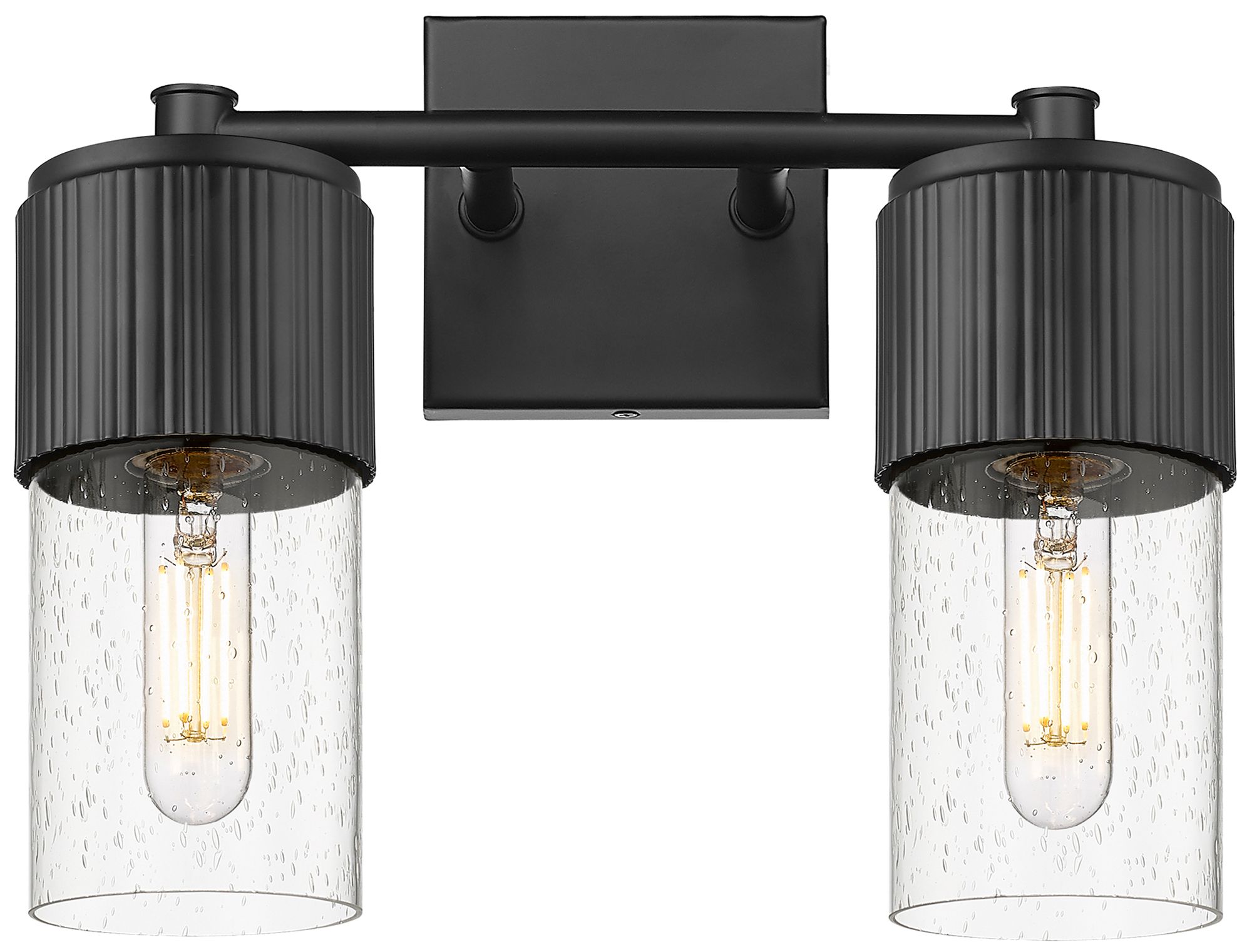 Bolivar 9.5" High 2 Light Matte Black Sconce With Seedy Glass Shade