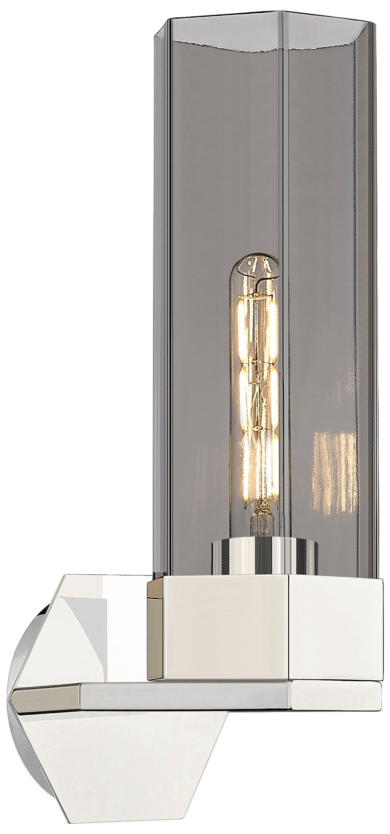 Claverack 16.13" High Polished Nickel Sconce With Plated Smoke Glass S