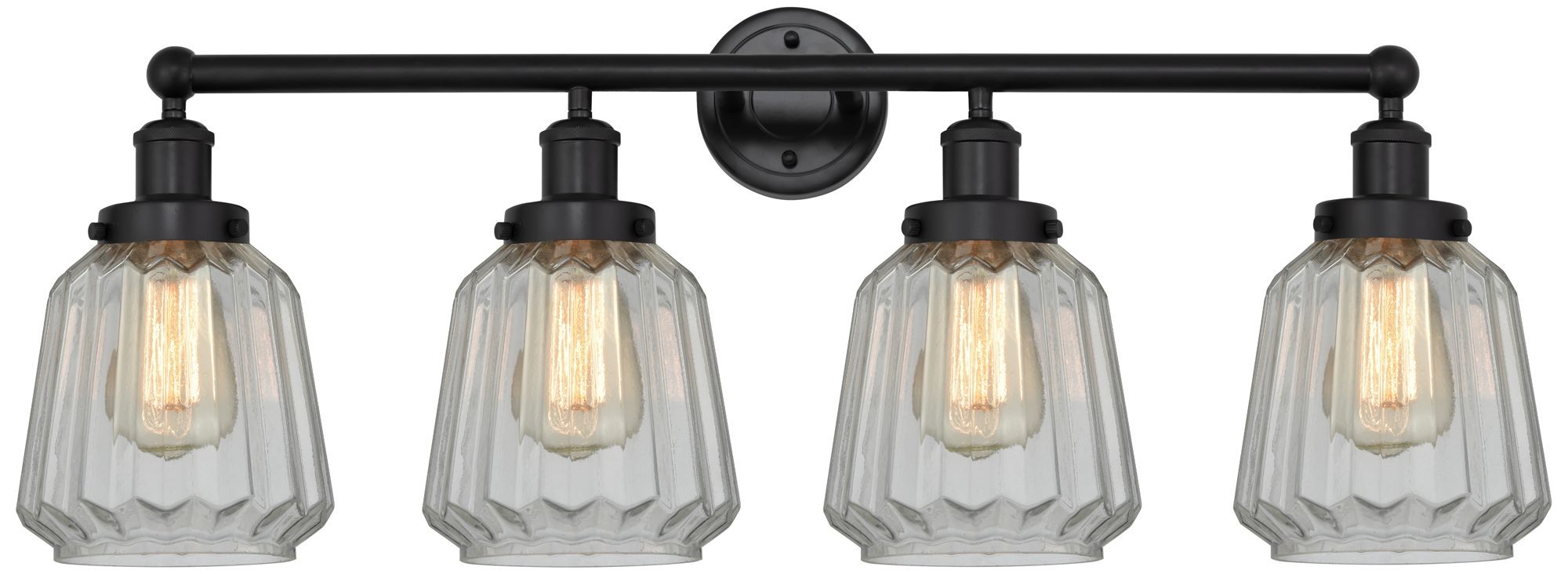 Edison Chatham 34" 4-Light Matte Black Bath Light w/ Matte White Shade