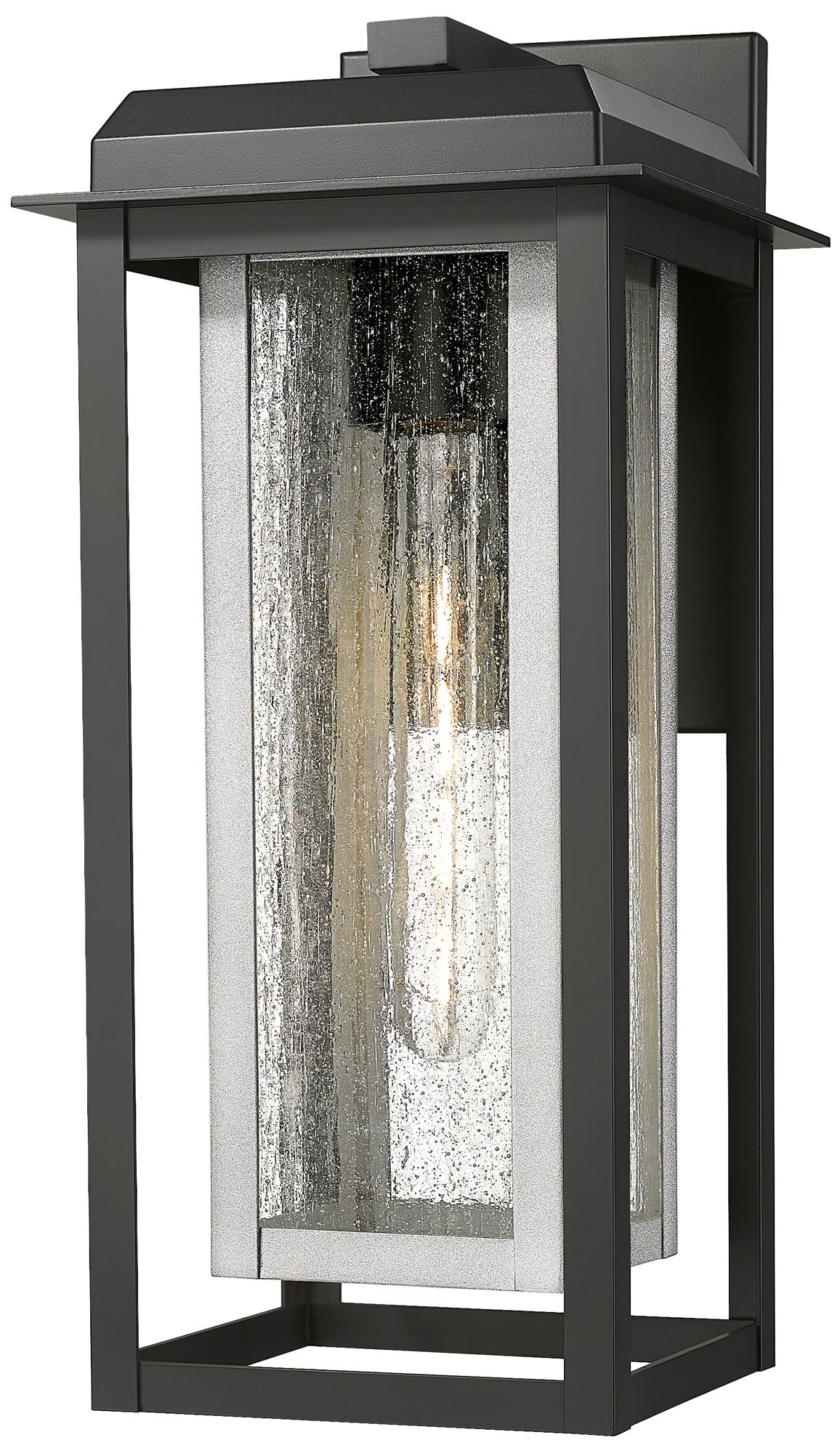 Mansfield 17" Matte Black & Silver Coastal Outdoor Sconce With Seeded Glass
