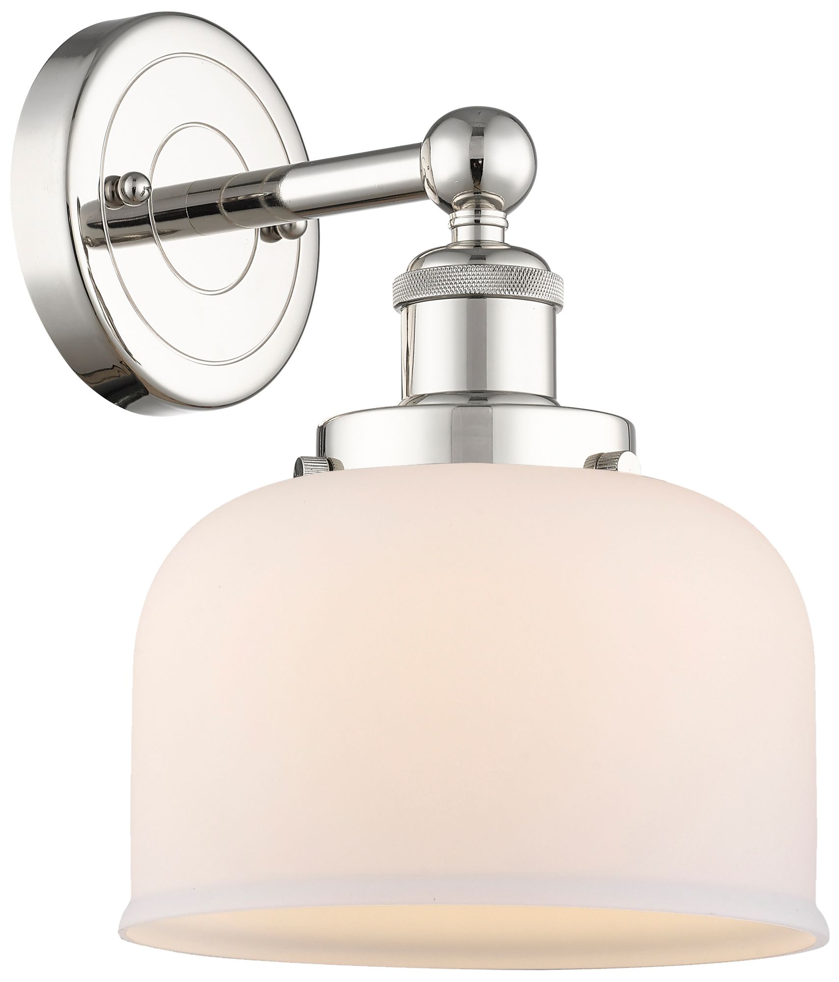 Large Bell 10"High Polished Nickel Sconce With Matte White Shade