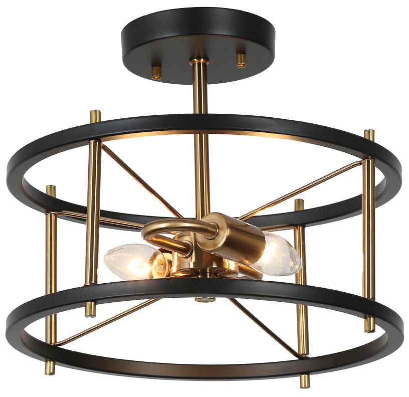 Lerwickiss 12" Wide Black and Brass 2-Light Ceiling Light