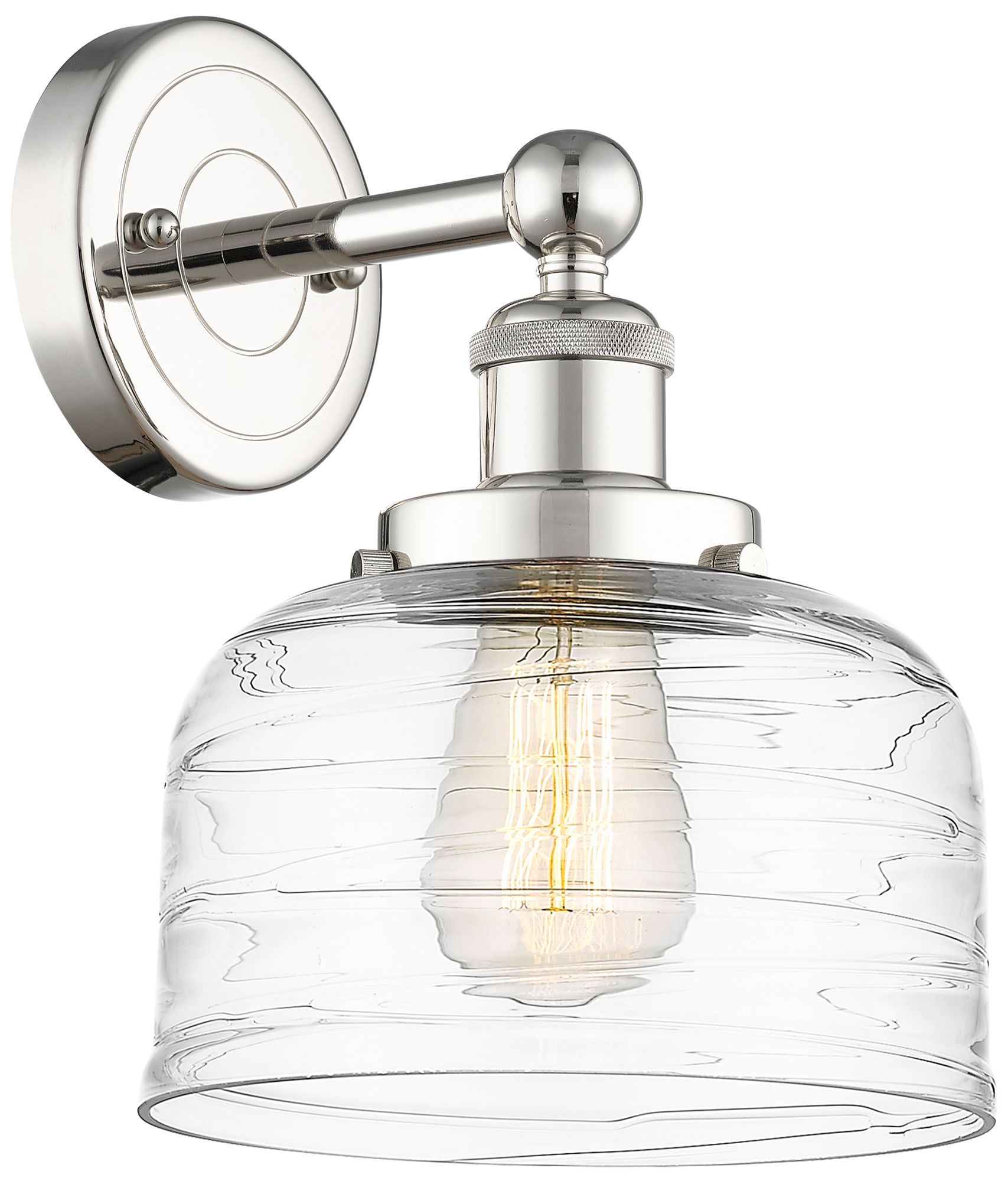 Large Bell 10"High Polished Nickel Sconce With Clear Deco Swirl Shade