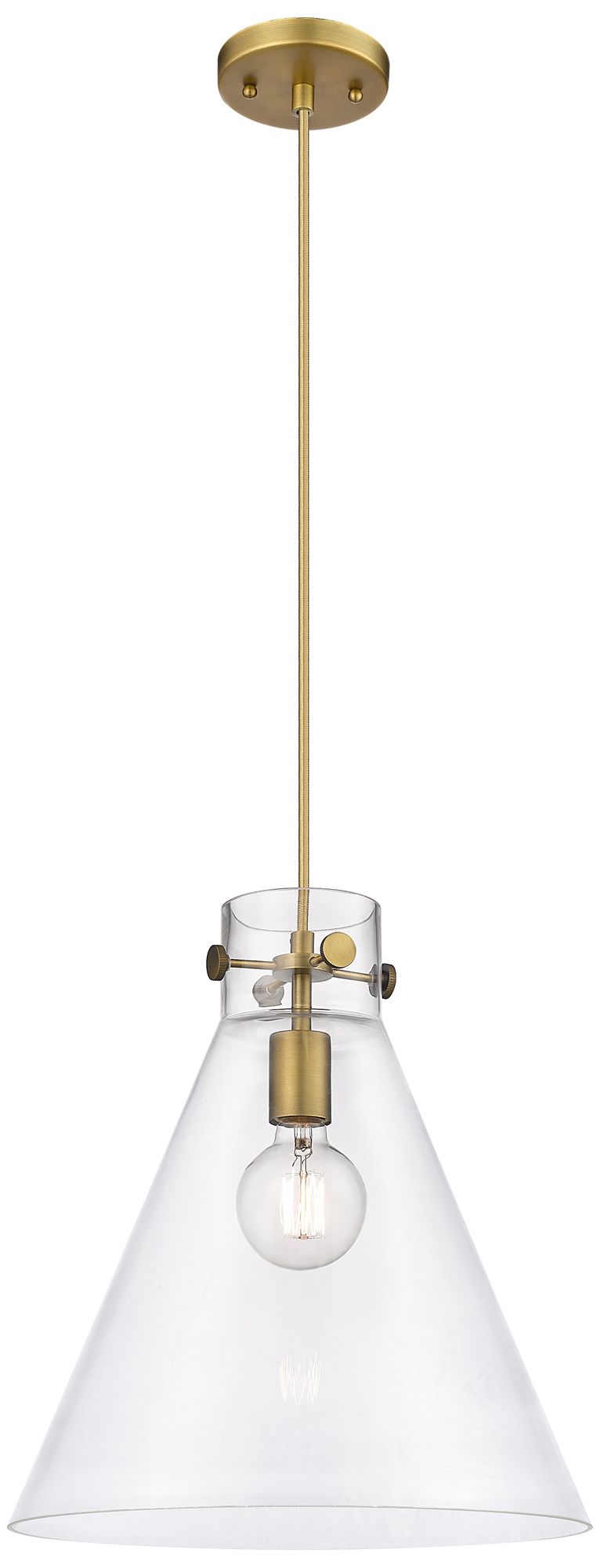 Newton Cone 14" Wide Cord Hung Brushed Brass Pendant With Clear Shade