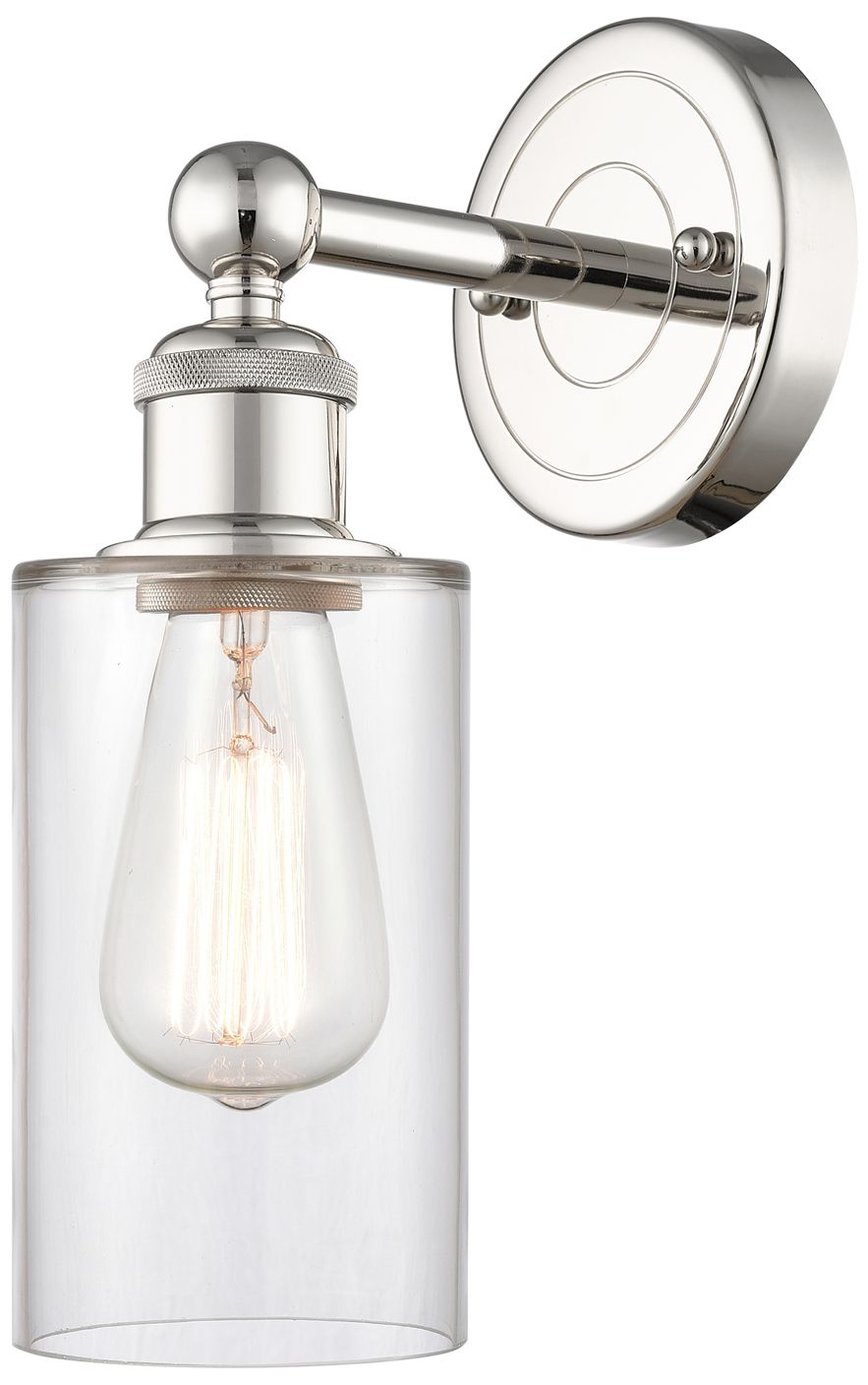Clymer 11.38"High Polished Nickel Sconce With Clear Shade