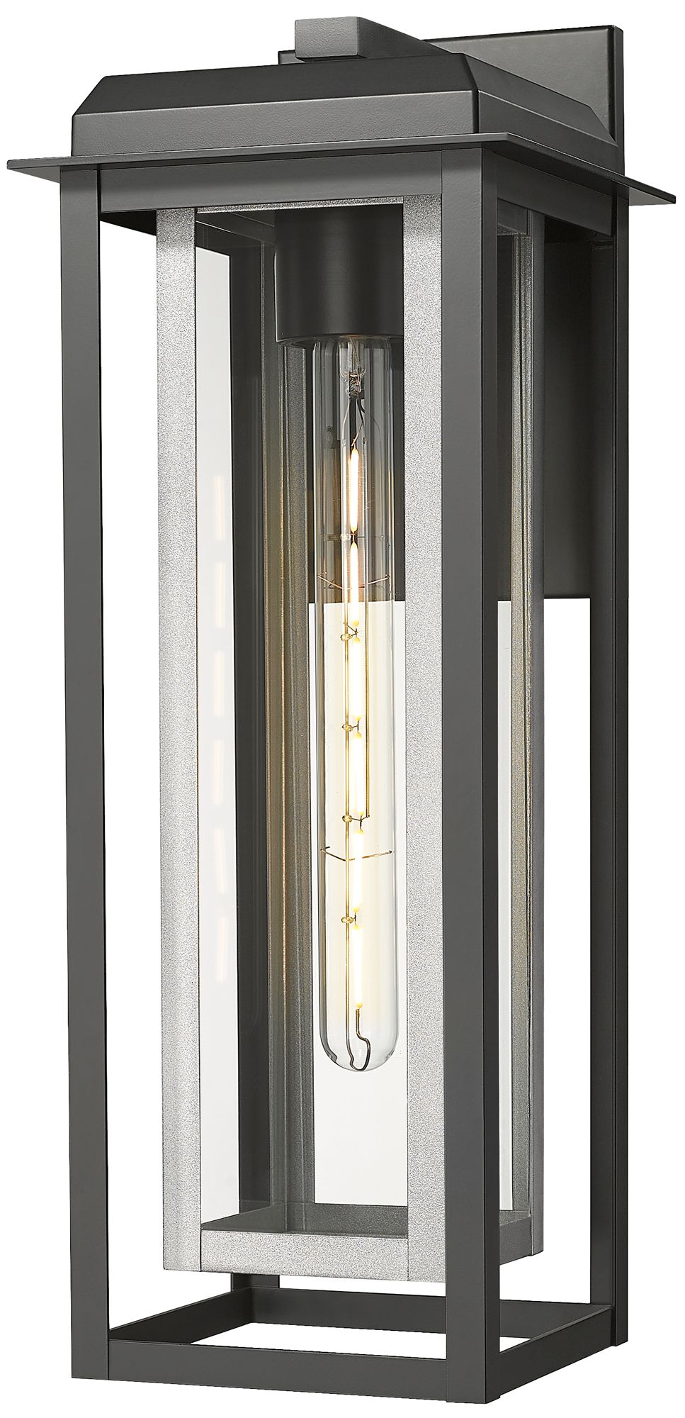Mansfield 20" Matte Black & Silver Coastal Outdoor Sconce With Clear Glass