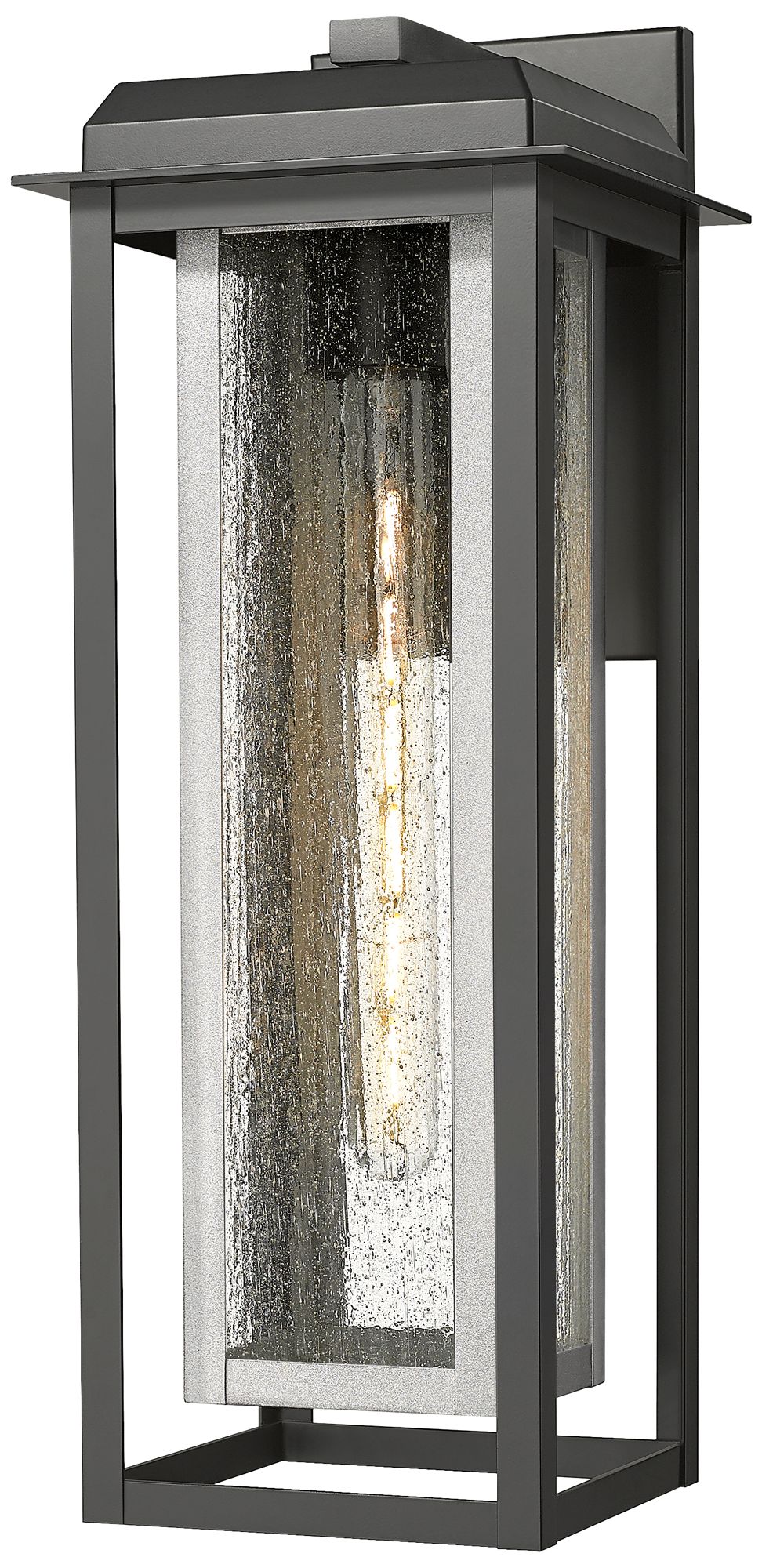 Mansfield 20" Matte Black & Silver Coastal Outdoor Sconce With Seeded Glass