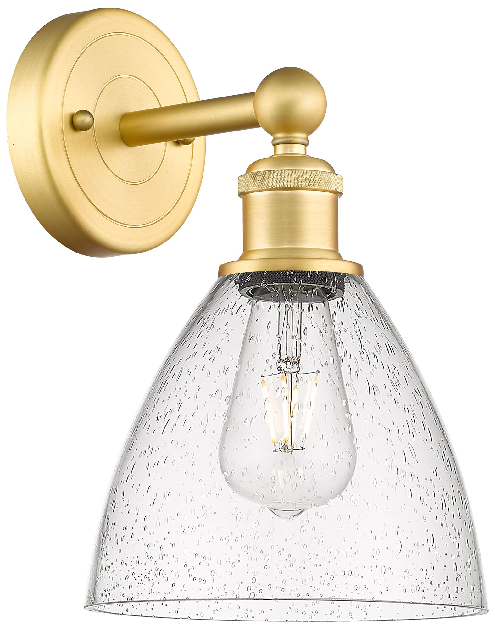 Edison Bristol Glass 12"High Satin Gold Sconce With Seedy Shade