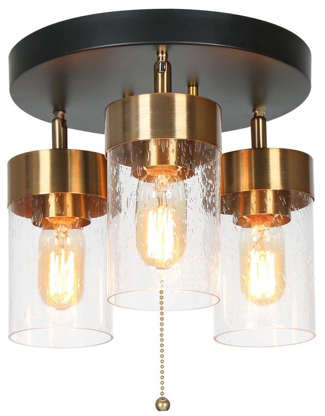 Hormosira 11" Wide Black and Brass 3-Light Ceiling Light