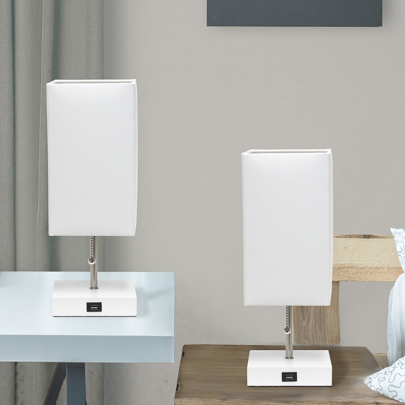 Simple Designs 14 1/4"H Stick White USB Table Lamps Set of 2