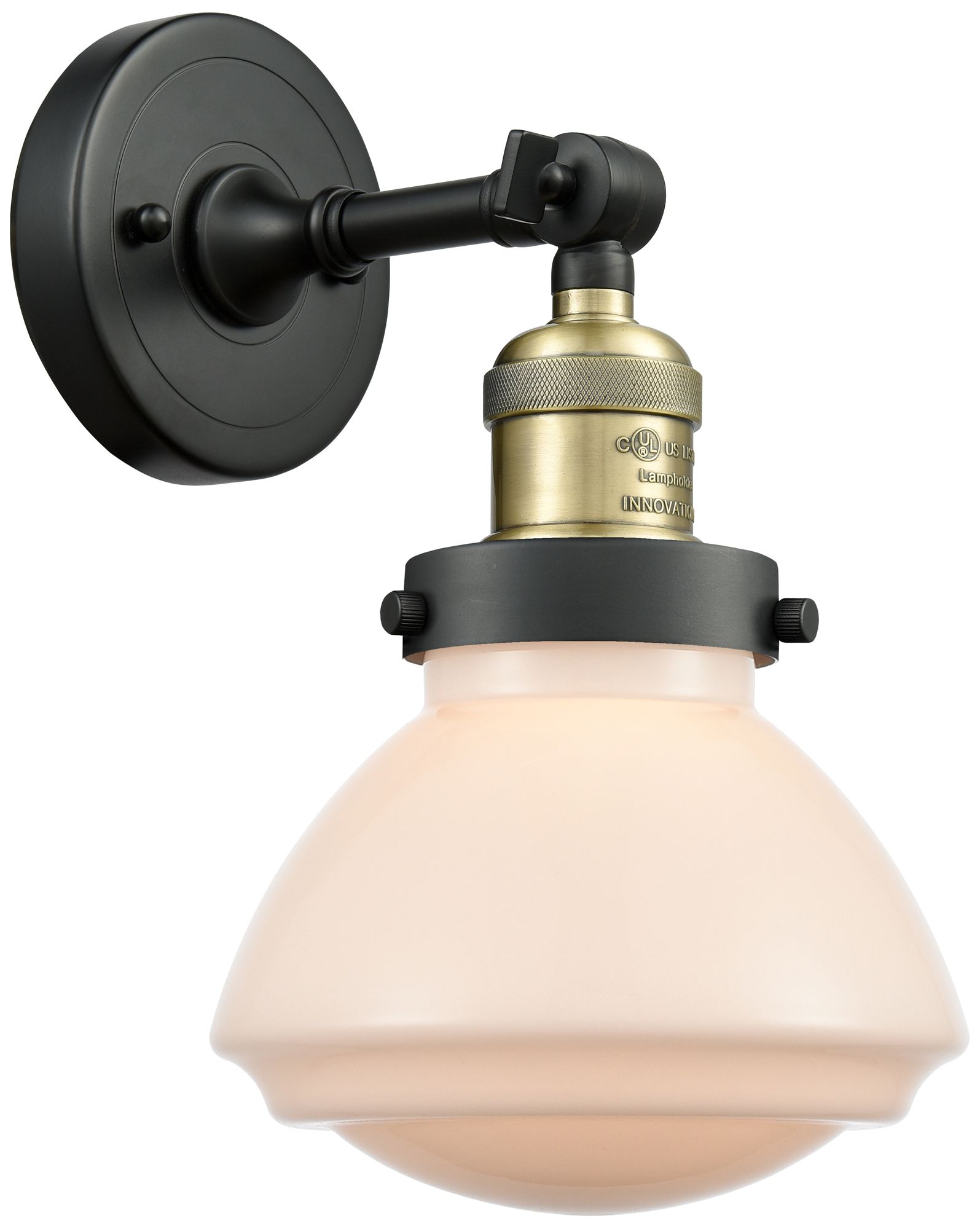 Franklin Olean 7.75" High Black Brass Sconce w/ Matte White Shade