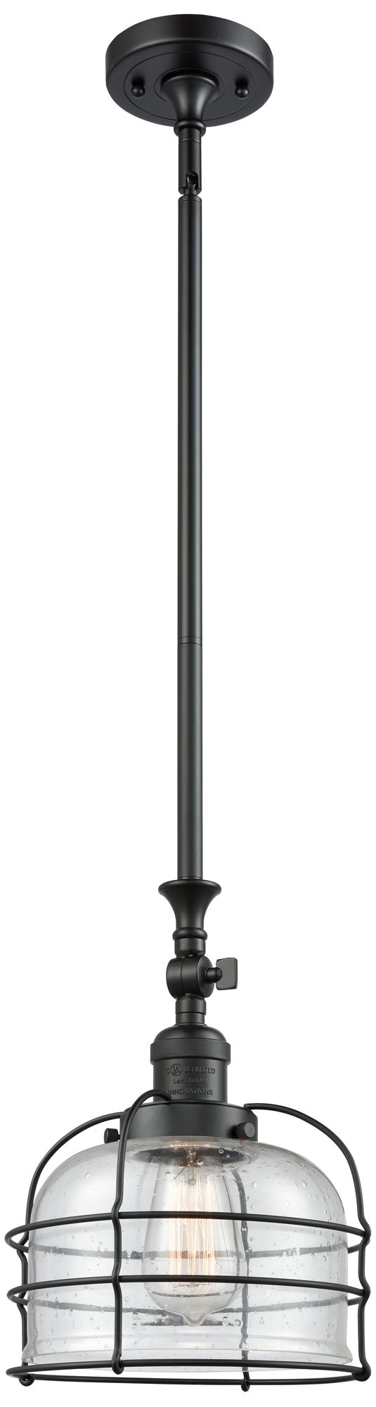 Franklin Restoration Bell Cage 9" Matte Black Mini Pendant w/ Seedy Sh