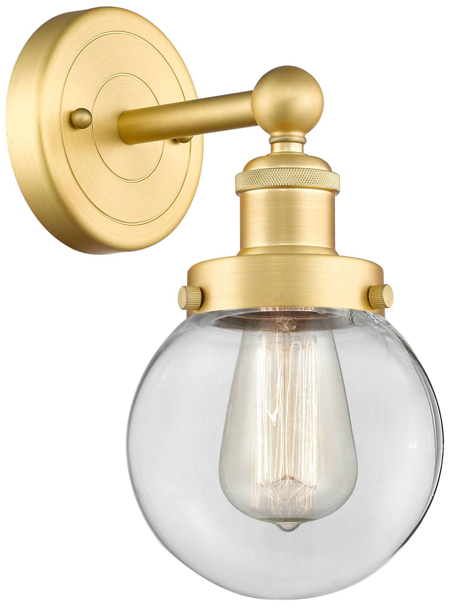 Small Beacon 10"High Satin Gold Sconce With Clear Shade