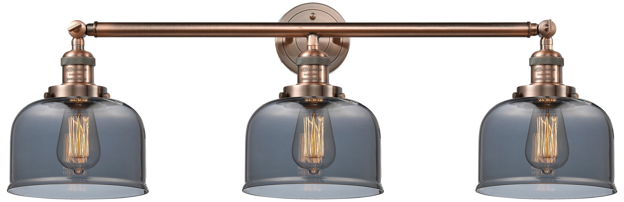 Bell 3 Light 32" LED Bath Light - Antique Copper - Plated Smoke Shade