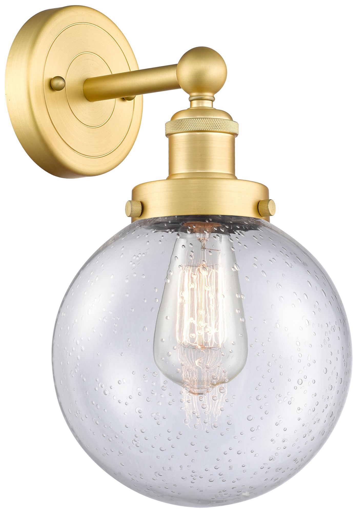 Large Beacon 10"High Satin Gold Sconce With Seedy Shade
