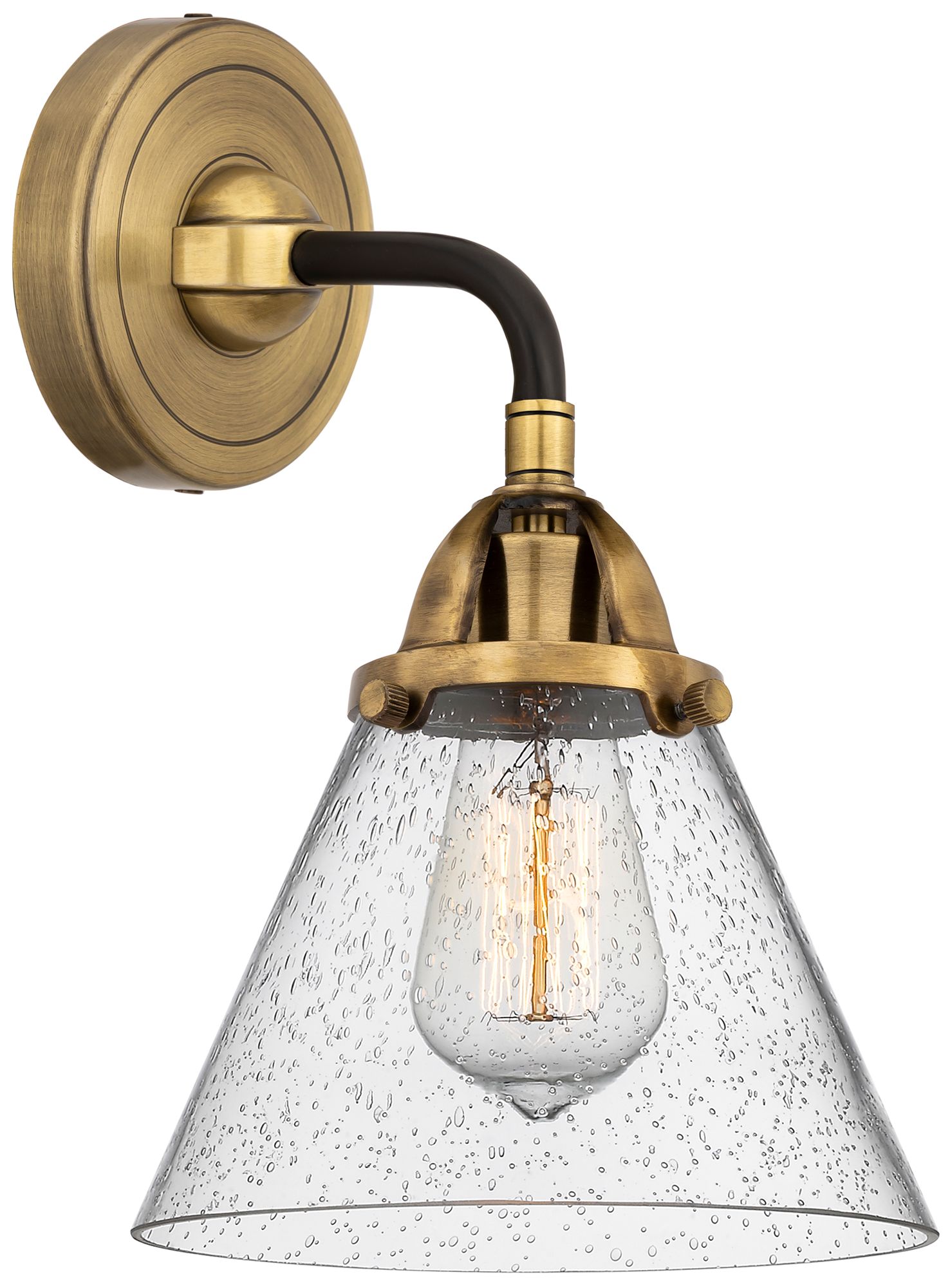 Nouveau 2 Cone 8" Incandescent Sconce - Black Brass Finish - Seedy Sha
