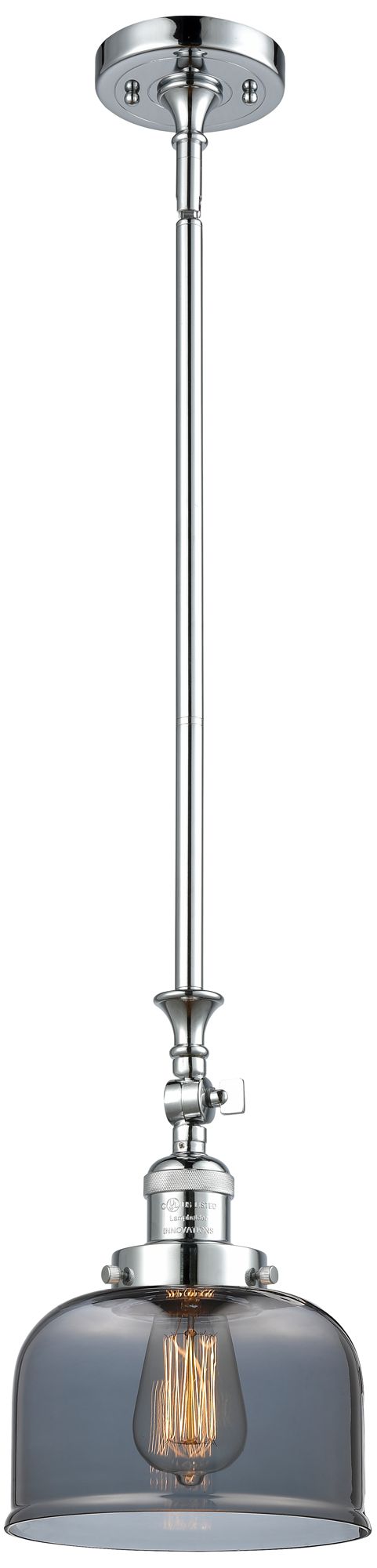 Bell 8" Wide Polished Chrome Stem Hung Mini Pendant w/ Plated Smoke Sh