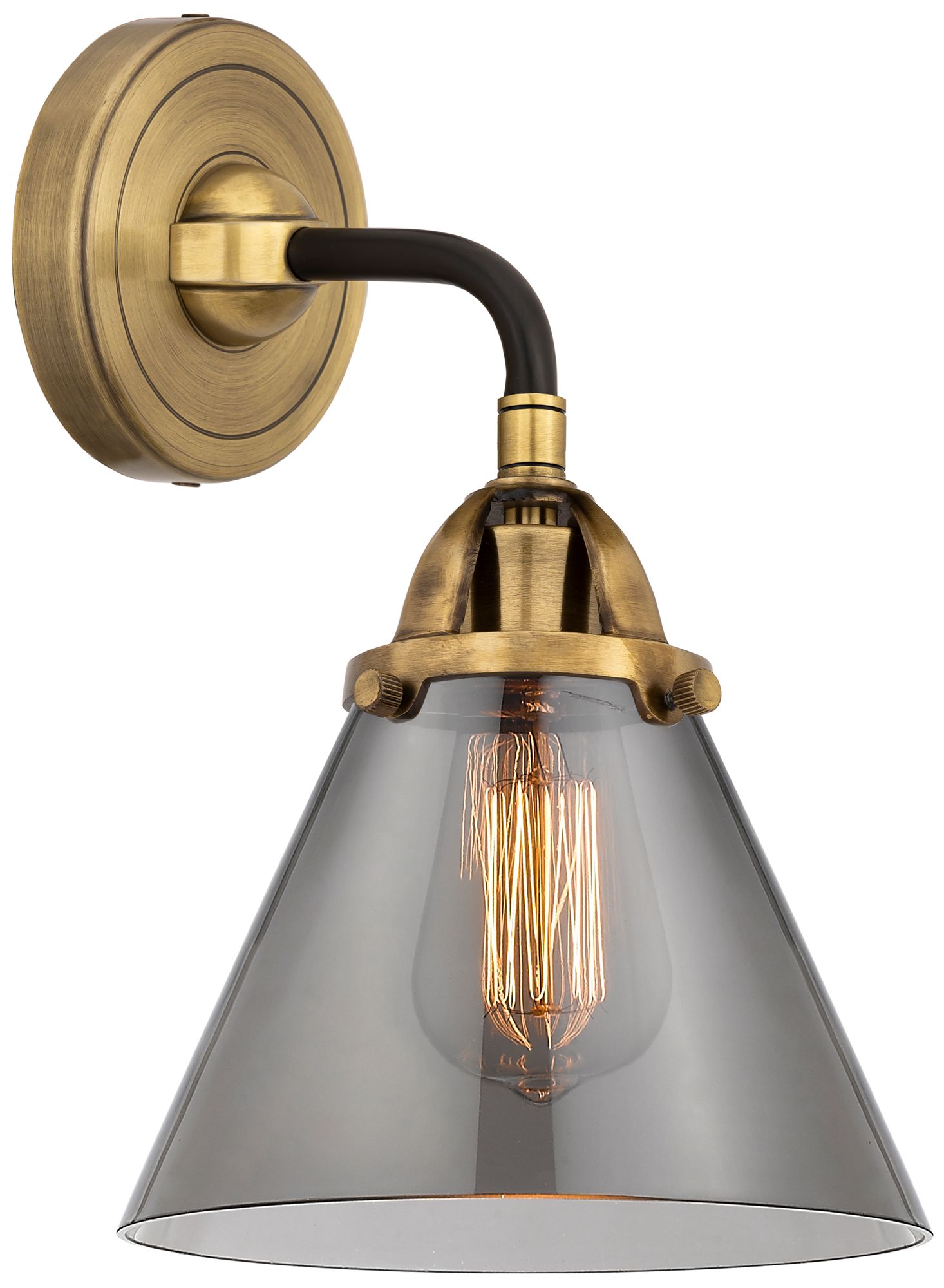 Nouveau 2 Cone 8" High Black Brass and Smoke Glass Wall Sconce