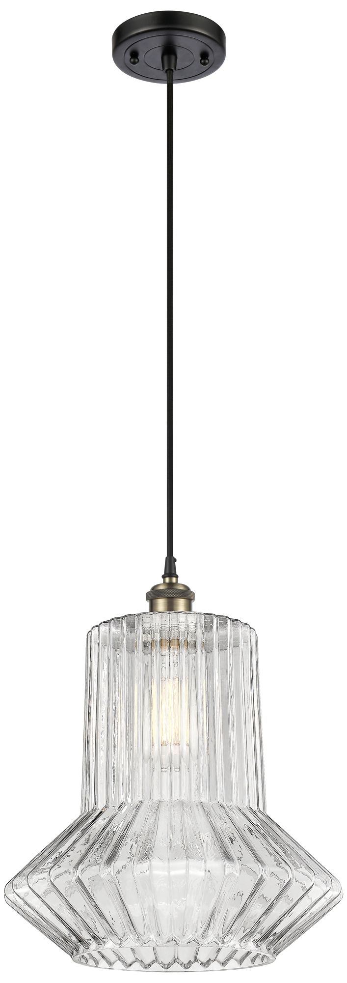 Springwater 12" LED Mini Pendant - Black Brass - Clear Spiral Fluted