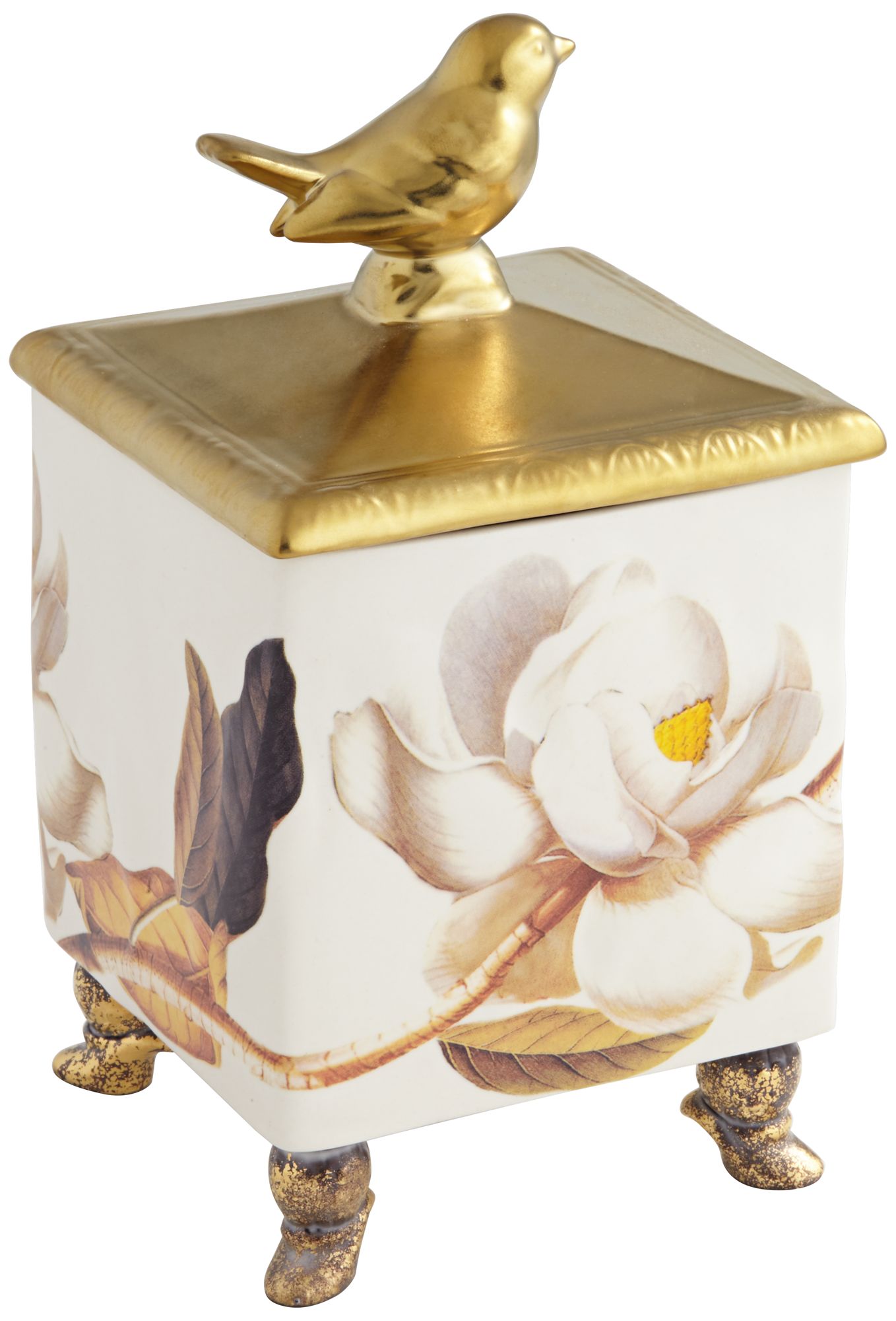 Gold and White 8" High Dolomite Painted Song Bird Box
