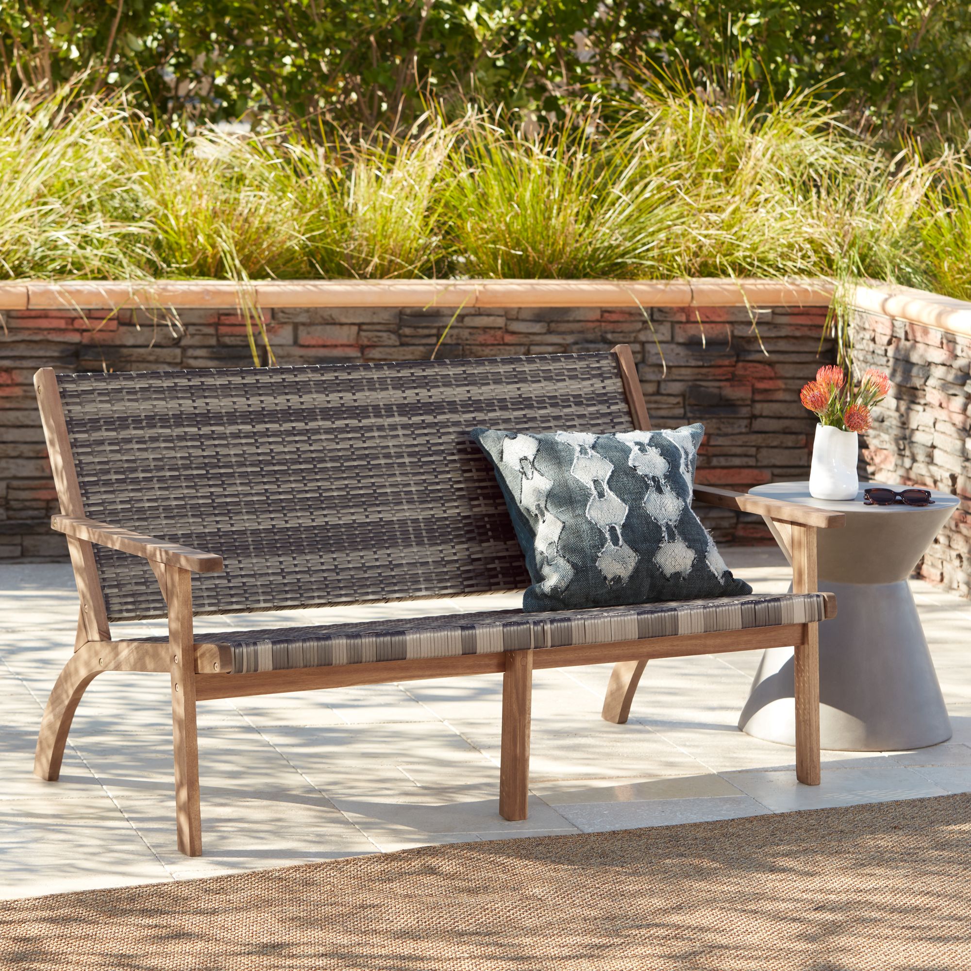 Perry 52 3/4" Wide Gray Wood Outdoor Sofa