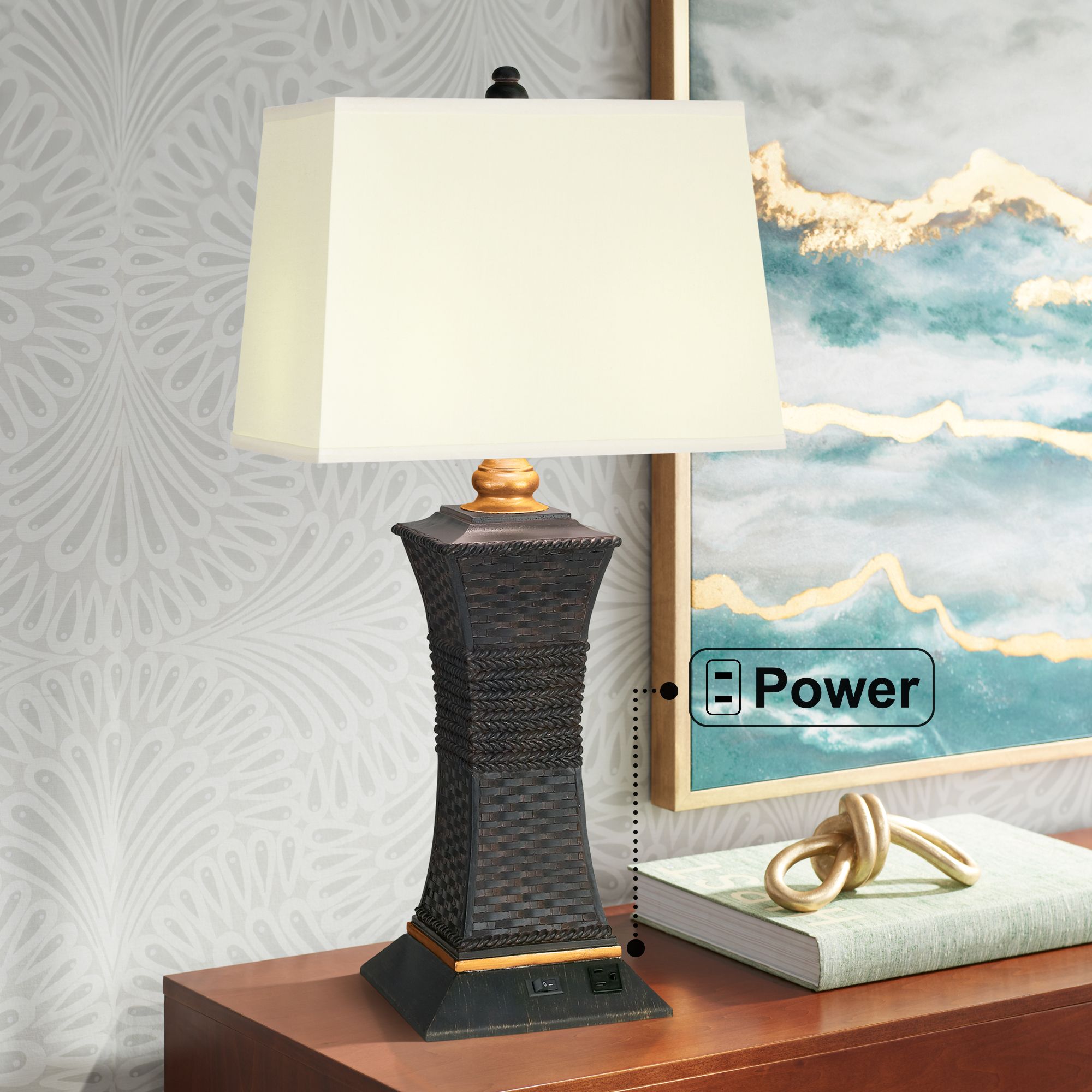 Regency Hill 29 1/2" Rattan Rope Workstation Outlet Socket Table Lamp