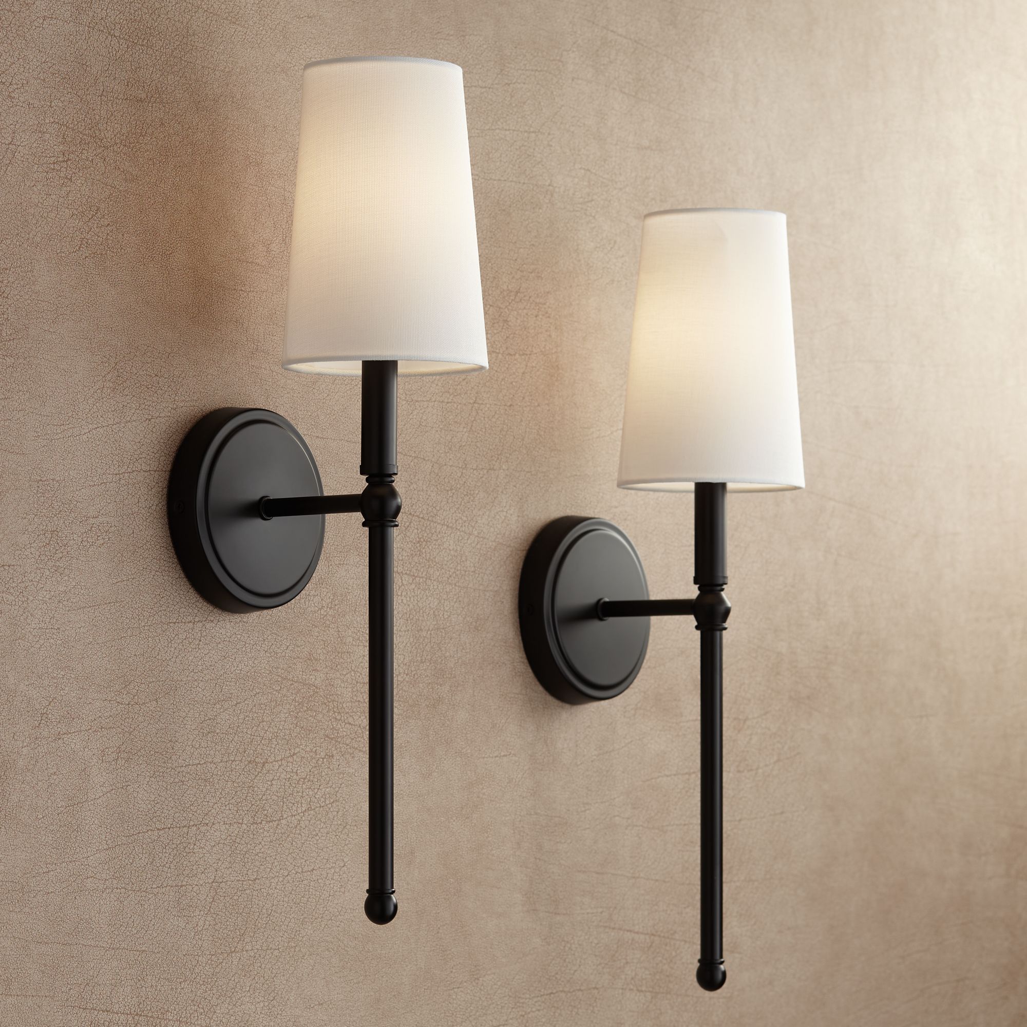 Greta 21" High Bronze Wall Sconces with Linen Shades Set of 2