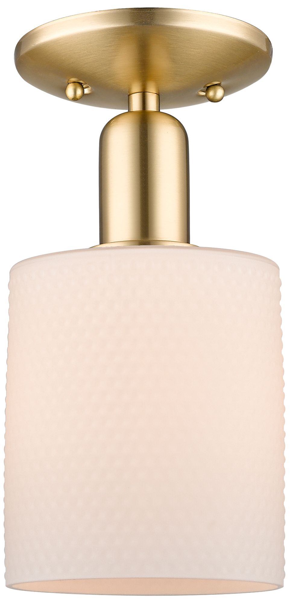 Arcadia Cobbleskill 5"W Bronze Semi.Flush Mount w/ Matte White Shade