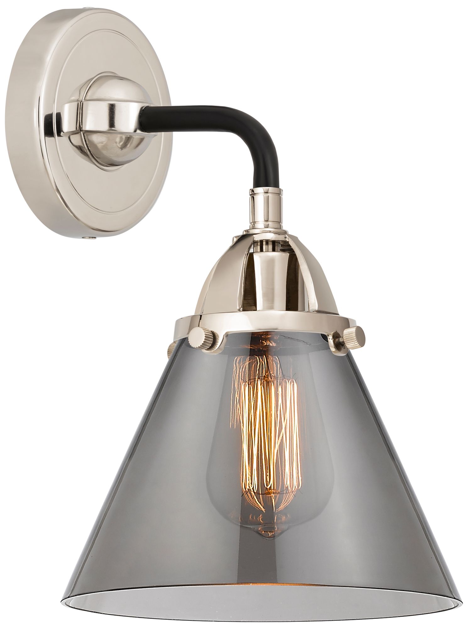 Nouveau 2 Cone 8" Incandescent Sconce - Black Nickel Finish - Smoke Sh