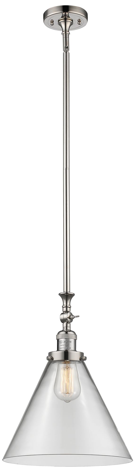 Cone 12" Wide Polished Nickel Stem Hung Mini Pendant w/ Clear Shade