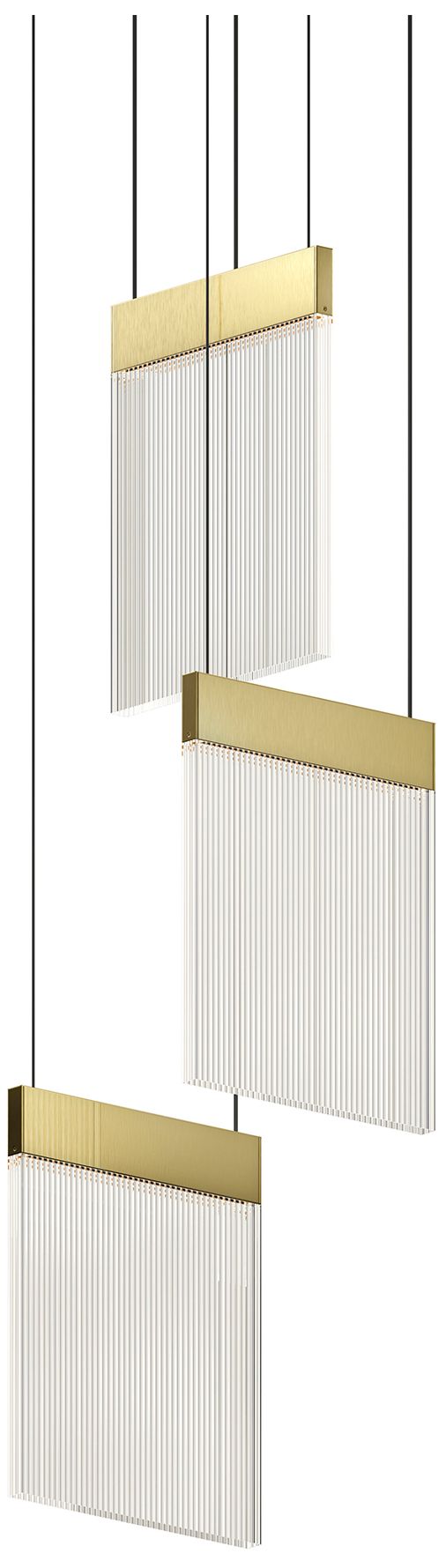 V Panels 8.75" Wide 3 Light Brass Pendant