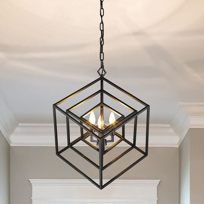 Z-Lite Euclide 23" Wide 3-Light Matte Black Geometric Chandelier