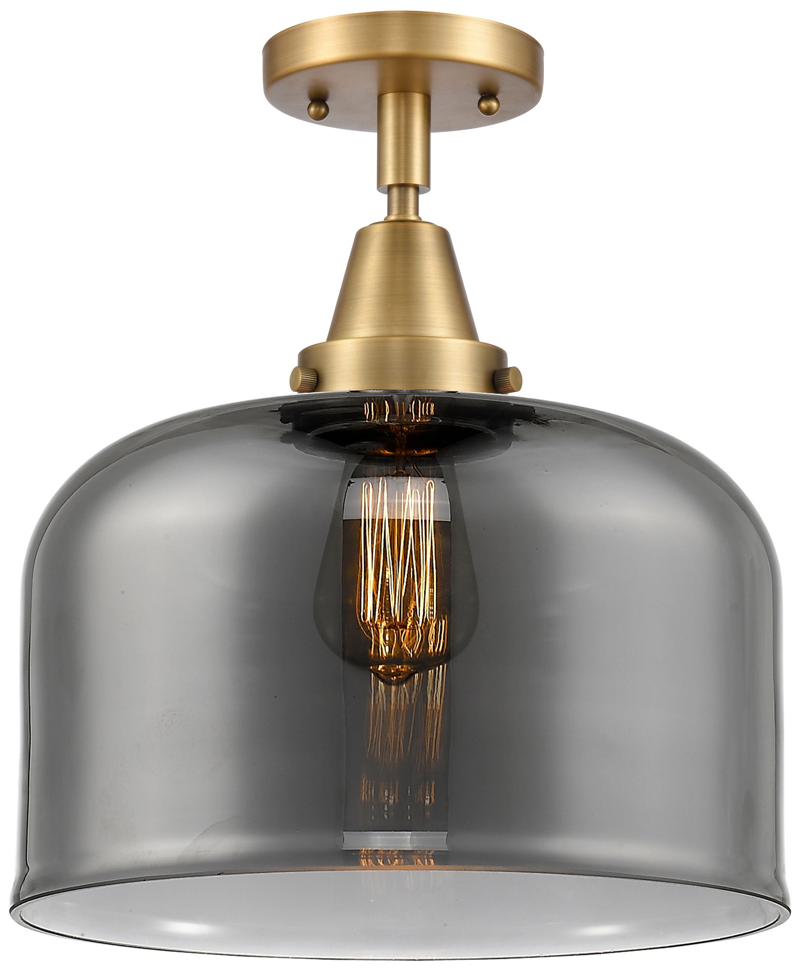 Caden Bell 12" LED Flush Mount - Brushed Brass - Plated Smoke Shade