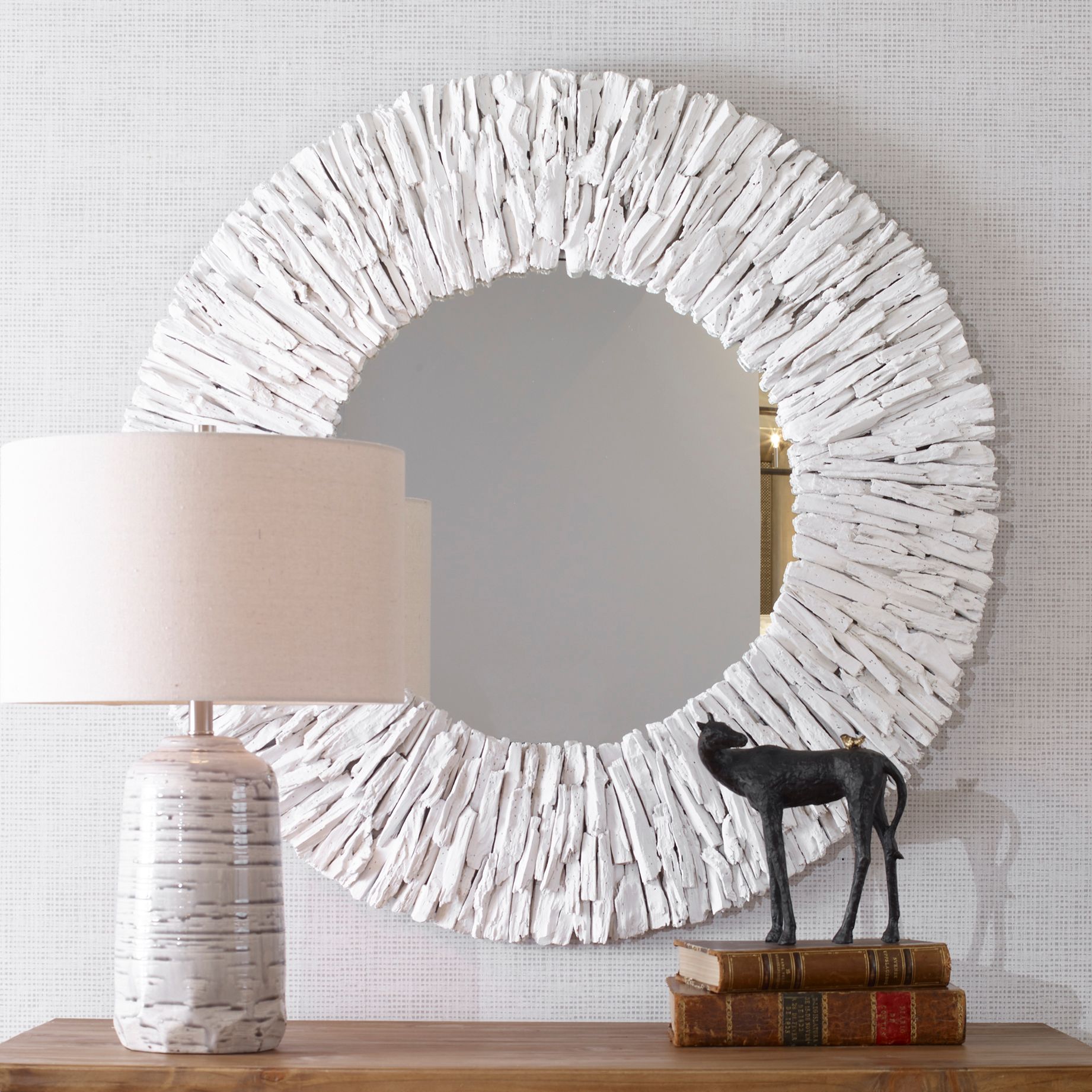 Teak Branch White 39 1/4" Round Oversized Wall Mirror