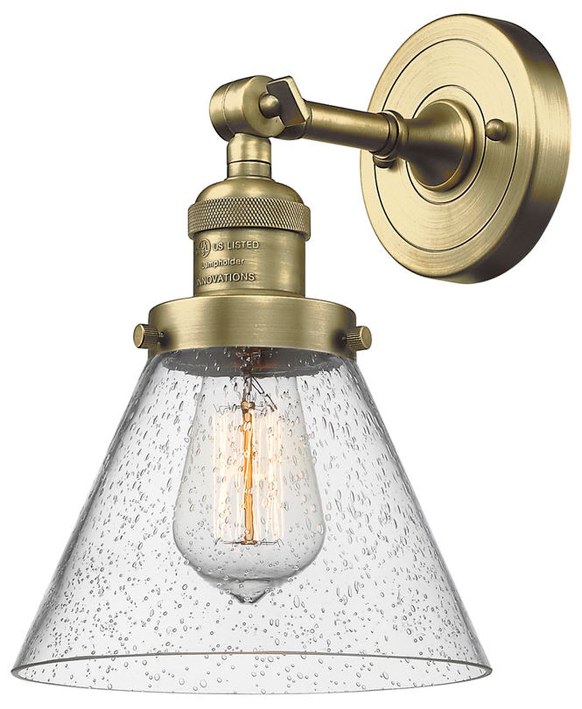 Cone 8" Antique Brass Sconce w/ Seedy Shade
