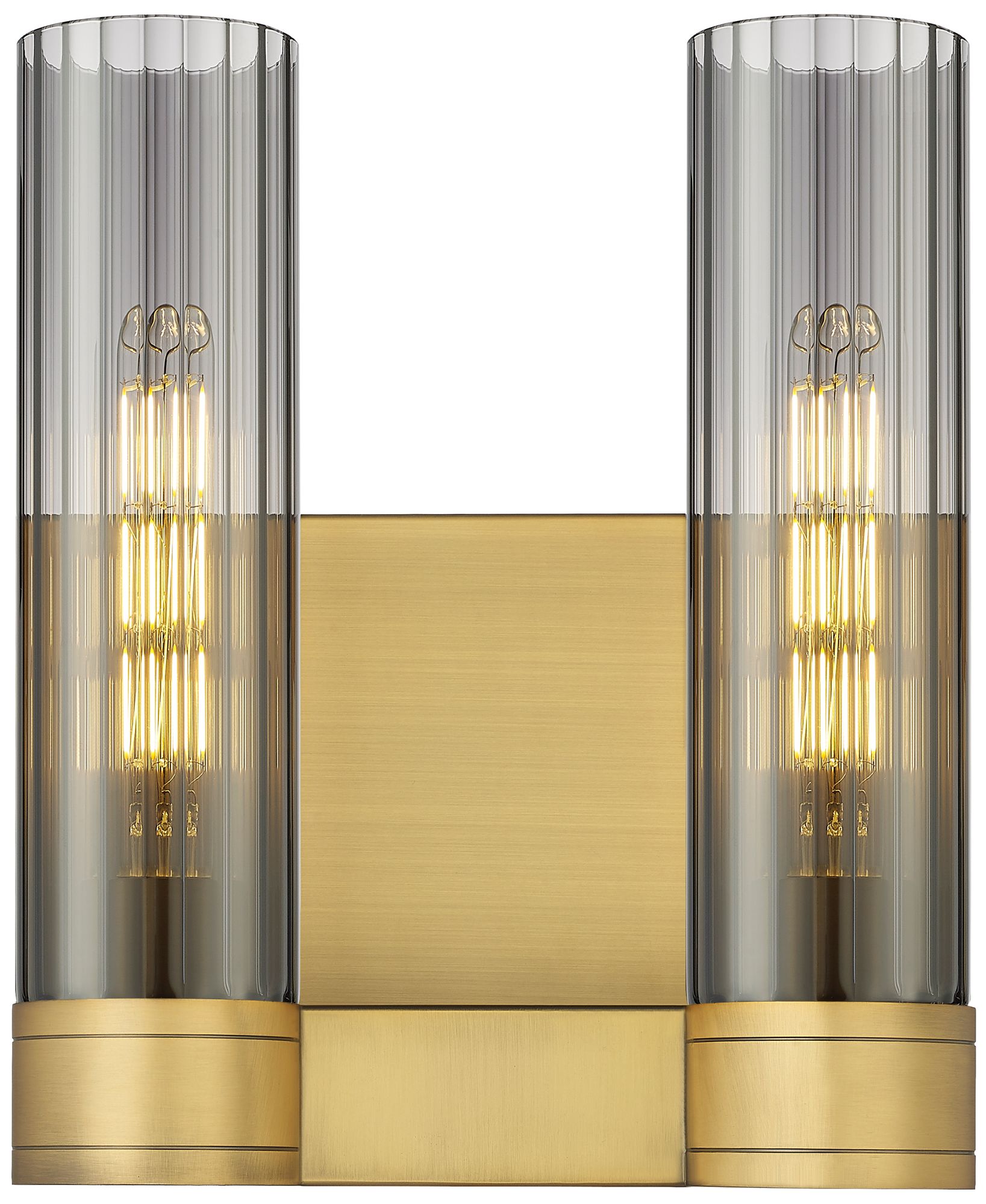 Empire 12.63" High 2 Light Brushed Brass Sconce With Smoke Shade