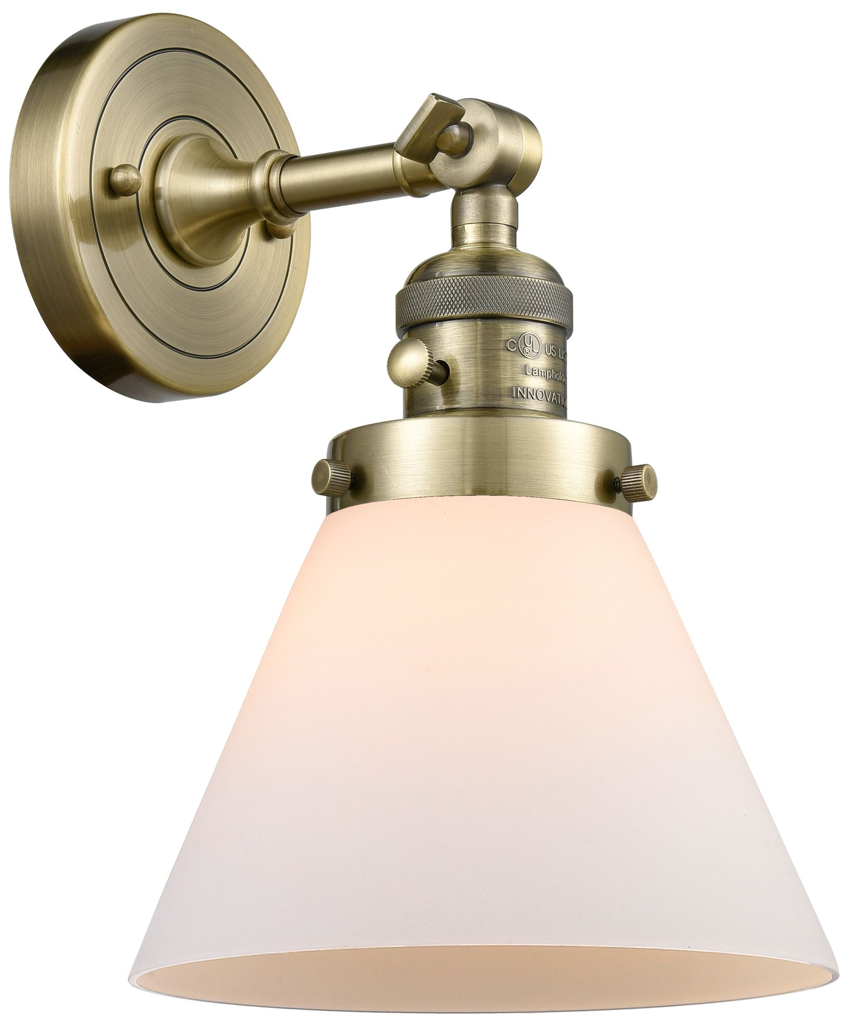 Cone 8" Sconce LED - Brass Finish - Matte White Shade
